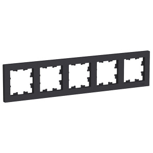 Данная рамка рассчитана на пять установочных мест. Она делает возможной правильное и эстетичное обустройство монтажа целого ряда электротехнических механизмов (выключателей, силовых и коммуникационных розеток, регуляторов света и термостатов) в одну универсальную панель.
