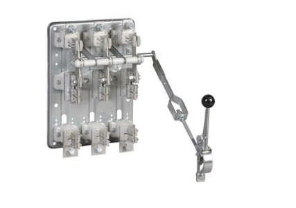 Разъединитель-предохранитель 3 полюсный на номинальный ток 400 А, номинальный условный ток короткого замыкания Iq 30 (кА), где установлена передняя смещенная рукоятка, а максимальное сечение присоединяемых медных шин составляет 240 кв. мм.