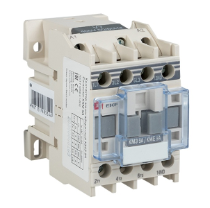 Контактор серии КМЭ от компании EKF Proxima представляет собой малогабаритный коммутационный агрегат, который служит для пуска и отключения, без предварительной остановки, двигателей с короткозамкнутым ротором, а также для коммутации неиндуктивных или слабо индуктивных нагрузок. Это практичное устройство, которое позволяет управлять нагрузкой в цепи переменного тока частотой 50/60 Герц с напряжением до 660 Вольт. Напряжение цепи управления - 220 Вольт. Оно подходит для категории применения АС 3 и АС 1. Аппарат состоит из корпуса, закрепленных в нем неподвижных и подвижных контактов, которые зафиксированы в подвижной части магнитной системы. При подаче напряжения на катушку управления контактора возникает магнитное поле, которое, преодолевая сопротивление пружины, замыкает контакты. В обратном случае контакты размыкаются. Корпус защищает от случайного касания к токоведущим частям. Данная модель рассчитана на номинальный рабочий ток в 9 Ампер и оснащена 1 группой дополнительных контактов (нормально открытыми).